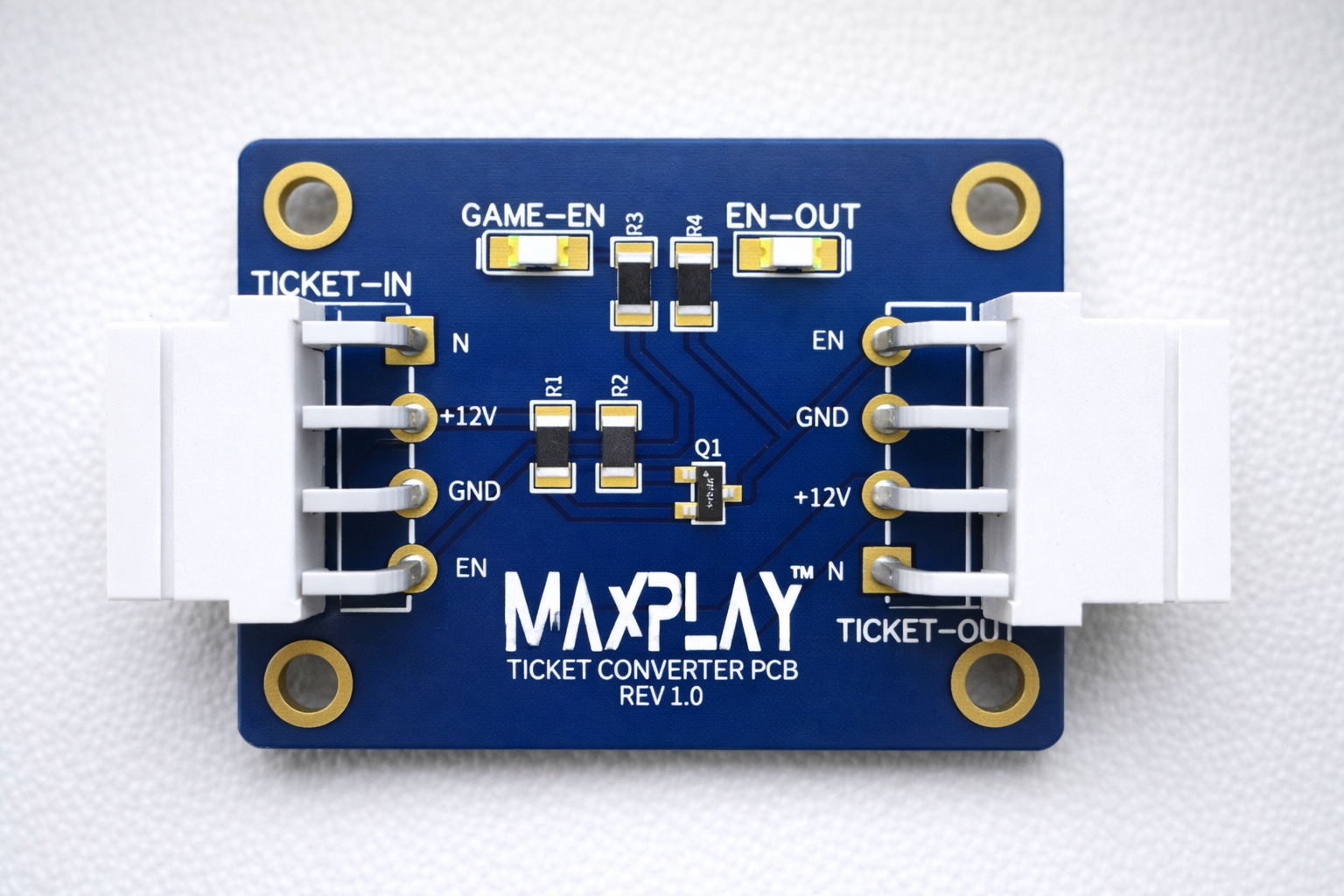 The MAXPLAY™ Ticket Converter PCB is a compact, inline solution designed to adapt the enable signals between arcade redemption games and external ticket or card-based systems.